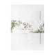Le design présente des éclaboussures d'aquarelle rose pâle ou rousse avec des éclaboussures imprimées en or simulées. Le design présente également des éléments floraux rose vif dans des bouquets de verdure ou des couronnes. Les gerbes/bouquets contiennent un succulent eucalyptus et d'autres éléments de verdure dans les tons vert émeraude foncé, vert sauge, bleu poussiéreux et plus pour s'adapter à toutes les saisons que votre mariage peut tomber dans et les couleurs qui complètent la couleur rousse.