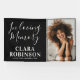 Une bannière funéraire élégante avec un fond noir classique qui peut être changé en n'importe quelle couleur, une photographie encadrée contemporaine de votre proche et un modèle 'en souvenir' qui peut être facilement personnalisé.