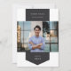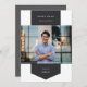 Customisez ce faire-part moderne de graduation avec une photo horizontale ou paysagère superposée sur une bannière ruban au riche charbon de bois. Ajoutez le nom de votre diplômé, l'école et l'année de fin d'études. Personnalisez le dos avec une photo supplémentaire et un message personnel.