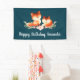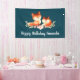 Bannière d'anniversaire avec un dessin de 2 renards rouges. L'un debout l'autre pose. Dessiné avec aquarelle.