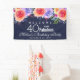 Bannière d'accueil d'anniversaire avec un joli bouquet de roses d'aquarelle et d'autres sprigs colorés, feuilles et branches qui s'étire sur le dessus de la bannière. Sur un arrière - plan bleu marine. Texte dit : 40 et fabuleux, merci d'être venu, ainsi que vos informations personnalisées sur l'événement.