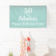Bannière de 50 et fabuleuse cinquantenaire en turquoise clair avec une typographie élégante et moderne et des confettis de parties scintillant pour ajouter un peu d'éclat à votre décor spécial fête. Personnalisable, il peut être utilisé pour n'importe quel âge.