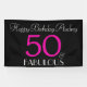 Célébrez son 50e anniversaire avec cette bannière d'anniversaire personnalisée "50 et fabuleux". Bannière noire avec "50 and Fabulous" dans une typographie moderne rose et blanc. Joyeux anniversaire dans un script élégant peut être personnalisé avec le nom de la fille d'anniversaire.