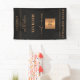 Design élégant en cuir noir de luxe (IMPRIMÉ) fête d'anniversaire personnalisée bannière verticale avec texte modifiable, âge, un carré de parties scintillant en or, et nom, date et lieu personnalisés.