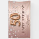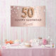 Elégant, classique, glamour et girly pour une fête de 50ème anniversaire. or rose et rose vif, arrière - plan dégradé. Décoré de faux diamants rose en or. Personnalisez et ajoutez un nom. Avec le texte : Joyeux anniversaire. Le nom est écrit avec un script de style moderne en lettres de couleur rose foncé. Le numéro 50 est écrit avec une police de style ballon. Peut être utilisé comme bannière de bienvenue ou comme décoration murale de fête.