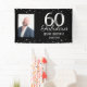 Bannière noire élégante du 60e anniversaire avec texte ajustable Happy Birthday et Custom Name Text. Choisissez votre photo préférée et téléchargez! Faux foil confetti argent et 60 nombre.