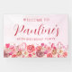 Les filles de tous âges adoreront ce design féminin. Des roses d'aquarelle rose et des coeurs tourbillonnant fantaisistes créent le signe de bienvenue idéal pour un anniversaire de Février ou de Saint-Valentin à 60 ans. Les bonbons et les macarons ajoutent au design sucré. L'aquarelle rose la plus douce encadre parfaitement le texte et les graphiques. Tout le texte est modifiable, vous pouvez donc soigneusement concevoir votre bannière de bienvenue. Cet article fait partie de la collection Rose and Tourbillonnant Heart. Vous pouvez facilement choisir votre thème, puis créer une suite d'invitation unique, des panneaux d'accueil et des fournitures et décorations supplémentaires.