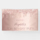 Une bannière pour une fête de 70e anniversaire girly et glamour. Un arrière - plan en or rose avec des gouttes, peindre l'aspect goutte à goutte. Le texte : Tentez un nom écrit en or rose foncé avec un grand script de style manuscrit moderne. Modèles pour une date et l'âge 70. Idéal à la fois comme bannière de bienvenue ou comme décor de fête.