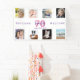 Bienvenue à une fête du 70e anniversaire pour une femme, célébrant sa vie avec un collage de 8 de vos propres photos. Photo de famille, amis, animaux domestiques, enfants, petits-enfants, vacances. Modèles pour un nom, 70 ans et une date. Avec le texte : Bienvenue (x2) Lettres de couleur rose et violet. Arrière - plan blanc élégant.