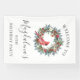 Elegant watercolor red cardinal framed by a classic winter pine wreath. Red and white flowers, berries and pinecones add to the greenery. All the text is editable.