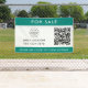 Bannière immobilière simple "A Vendre" au code QR dans un style minimaliste moderne avec une couleur turquoise vert jade. Les détails de l'agent et d'autres textes peuvent être customisés pour toute vente, y compris le téléchargement facile du logo de votre agence et du code QR pour la liste des propriétés (maison, lot ou terrain à vendre). #immobilier #QRcode #commerceétranger