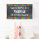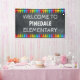 Bannière de bienvenue à l'école avec rangée de crayons en bas et en haut ! Parfait pour les portes d'entrée, les portes d'entrée, les bureaux, les festivals, les foires et les programmes éducatifs. Voir aussi nos portes d'accueil en classe.