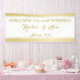 Ajoutez cette élégante bannière de réception de mariage à vos accessoires de réception. Conçu avec le texte : Bienvenue à Notre Mariage, les Noms et Mariages de la mariée et de la chambre; et décoré avec des bandes d'accent de couleur or haut et bas. Pour personnaliser, insérez simplement votre texte dans notre modèle facile, en remplaçant les noms et la date des exemples. N'oubliez pas de consulter la collection de Mariages encadrés d'or Elegant pour les articles de papeterie et les accessoires correspondants.