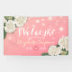 Mariage Welcome Banner Modèles - Elégant blanc belle aquarelle Hydrangea Fleurs et String Lights sur rose Gradient Arrière - plan. Un Design Parfait Pour Votre Grand Jour ! Tous Les Style De Texte, Couleurs, Tailles Peuvent Être Modifiés En Fonction De Vos Besoins.