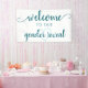 Simple horizontal welcome sign for any shower, party, or reception featuring a fun, casual hand-siged script with heart. Le design classique inclut un typography overlay typography typography, en caractères de main moderne. The lovely font with a customizable background color makes it easy to fit any theme. For other colors or matching products, please visit the JustFharryn Zazzle store, or contact the designer, c/o fharryn@yahoo.com All rights reserve. #zazzlemade