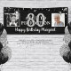 Bannière d'anniversaire des étoiles noires et argentées pour tout âge anniversaire personnalisé avec deux photos et votre texte personnalisé. L'exemple montre AGED TO PERFECTION à l'âge de 80 ans modifiable et le message d'accueil HAPPY BANTHDAY NAME. Amusant d'utiliser les photos Puis et Maintenant. OPTIONS : L'échantillon est présenté dans une taille de 2,5x6' : d'autres tailles sont disponibles sur la page de commande ou le dessin peut être transféré sur une affiche, une planche en mousse, une tapisserie ou un autre produit ou converti par le concepteur en fichier de téléchargement numérique pour impression locale. ASSISTANCE : Pour obtenir de l'aide sur la modification ou la personnalisation de la conception, le changement de couleur, le redimensionnement, le transfert de la conception à un autre produit ou si vous souhaitez coordonner des éléments, contactez le concepteur AVANT de commander par Zazzle Conversation ou par courriel makeitaboutyoustore@gmail.com.