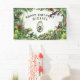 Cette bannière d'anniversaire amusante et vibrante sur le thème des dinosaures apporte à la vie l'excitation préhistorique avec une jungle d'aquarelle luxuriante peinte à la main de feuillage vert et une variété de dinosaures détaillés autour d'un oeuf fissuré central avec l'âge d'anniversaire. L’audacieux message "Joyeux Anniversaire" s’élève au-dessus du nom en typographie ludique, parfaitement adapté à la célébration d’un amoureux de dinosaure. Avec des stérosaures volants et des T-Rex rugissants, ce design dynamique ouvre la voie à une ambiance de fête aventureuse, ce qui en fait une décoration idéale pour les fêtes d'anniversaire intérieures ou extérieures.