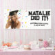 Faites de votre fête de remise des diplômes un tout nouveau niveau de plaisir et d'ambiance avec notre Bannière photo personnalisée Funny Personnalisée Anniversaire ! Ce n'est pas n'importe quelle bannière, c'est un hommage plus grand que nature à la diplômée qui vous apporte des sourires, des rires et des souvenirs inoubliables à votre fête. Imaginez la scène : à l'arrivée des invités, ils sont accueillis par une bannière hilarante et chaleureuse qui présente le visage et le centre du diplômé, ornés d'accessoires ludiques pour la remise des diplômes. Il s'agit d'un début de conversation instantanée et d'une façon fantastique d'honorer les réalisations du diplômé en style. Mais les options de personnalisation ne s'arrêtent pas là ! Grâce à notre outil de conception facile à utiliser, vous pouvez ajouter des messages personnalisés, l'année de remise des diplômes et tout autre détail qui rendent la bannière unique à vous. Que vous fêtiez un baccalauréat ou un diplôme d'études supérieures, à l'intérieur ou à l'extérieur, cette bannière préparera le terrain pour une célébration à retenir. Conçues à partir de matériaux durables, nos bannières photo personnalisées sont conçues pour résister à l'excitation de votre fête tout en ayant l'air parfait. De plus, avec une gamme d'options de taille disponible, vous pouvez trouver l'ajustement parfait pour votre espace de fête, que ce soit un rassemblement confortable ou une extravagance plus grande que la vie. Donc, si vous êtes prêt à ajouter une dose d'humour et de personnalité à votre fête de remise de diplômes, notre Bannière photo personnalisée Funny Personnalisée Anniversaire est le choix parfait. Préparez-vous à faire des souvenirs qui vont dernier une vie - un rire à la fois!