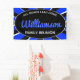 Accrochez-vous à votre propre bannière de réunion familiale monogrammée lors de votre prochain pique-nique de réunion familiale, de votre soirée de billard ou de votre réunion. Décor rétro et moderne bleu, noir et blanc. Ajoutez votre propre slogan familial ou gardez le texte "Toutes les routes mènent à la maison". Banderole de réunion familiale à utiliser année après année.