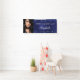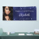 Célébration d'un 21e anniversaire (ou de tout âge) pour une fille/femme. Un arrière - plan bleu foncé. La couleur bleue est inégale. Décoré avec de la poussière de parties scintillant imitation. Personnalisez et ajoutez votre propre photo de la fille d'anniversaire. Utilisez une photo verticale/portrait. Le texte : Le nom en gris avec un script de style à la main moderne. Personnalisez et ajoutez un nom, 21 ans et une date. Peut être utilisé à la fois comme bannière de bienvenue ou décoration murale de fête.