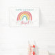La bannière Anniversaire de enfant de calligraphie arc-en-ciel colorée présente un arc-en-ciel dessiné à la main dans les tons rose, orange, jaune et turquoise et un nom de calligraphie tendance.