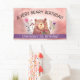 Cette jolie bannière d'anniversaire de fille offre une aquarelle d'un ours brun accentué de fleurs roses et violettes. Personnalisez cette bannière fantaisiste d'anniversaire d'enfant avec son nom.