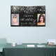 Une bannière pour une fête d'anniversaire girly et glamour pour deux filles, des femmes. Un arrière - plan noir chic avec de la poussière de parties scintillant en faux argent. Ajoutez vos propres 2 photos des filles d'anniversaire. Texte : Joyeux anniversaire. Le mot Anniversaire et les noms sont écrits avec un script de style à la main moderne. Peut être utilisé comme bannière de bienvenue et comme décoration murale de fête.