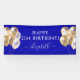 Pour une fête d'anniversaire de 21ème anniversaire (ou de n'importe quel âge). Un arrière - plan bleu royal. Décoré de ballons d'or. Personnalisez et ajoutez un nom et 21 ans. Lettres blanches. Le nom est écrit avec un script de style moderne écrit à la main avec des swashes. Pour que les swashes ne suppriment que le nom de l'échantillon, laissez les espaces ou émoticônes devant et après le nom.