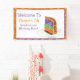 Cette bannière de bienvenue amusante et colorée présente un chef-d'oeuvre d'aquarelle d'un gâteau d'Halloween empilé avec des araignées éffrayantes et une givrage orange vif. Préparez-vous à une fête d'anniversaire incroyablement inoubliable !