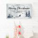 Banderole de Noël joyeux avec une scène boisée aquarelle avec des montagnes enneigées et des arbres forestiers, de mignons petits animaux de la faune silhouette et un modèle facile à personnaliser avec votre nom de famille.