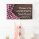 Célébrez vos retrouvailles de famille avec cette bannière parfaite pour pique-nique ou barbecue - une nappe à carreaux rouge et blanc couvrant un design de texture de bois sombre avec une typographie moderne mettant en valeur le nom de votre famille et le lieu et la date de la célébration de manière facilement personnalisable. Idéal comme panneau de bienvenue pour toute réunion de famille !