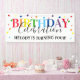 Ajoutez une touche de couleur à votre décor de fête d'anniversaire avec cette bannière de fête d'anniversaire moderne. Convient à tous les âges, garçons et filles. Doté d'une décoration à points polka colorés, de texte amusant arc-en-ciel combiné à une police calligraphique élégante, personnalisée avec le nom et l'âge.