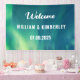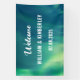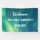 Moderne, élégant, Aurora Borealis, Northern Lights, bannière Mariage verte. Parfait pour les jeunes mariés. Vous pouvez le personnaliser avec le nom et la date de la mariée et du marié.