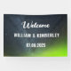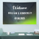 Moderne, élégant, Aurora Borealis, Northern Lights, bannière Mariage verte. Parfait pour les jeunes mariés. Vous pouvez le personnaliser avec le nom et la date de la mariée et du marié.