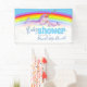 Bandeau de baby shower arc-en-ciel, avec un joli tableau d'aquarelle de narval blanc et arc-en-ciel graphique aux couleurs arc-en-ciel traditionnelles avec ciel bleu. Personnalisez avec votre propre nom honoré baby shower. D'autres articles correspondants sont disponibles. Unique aquarelle art et design par Sarah Trett pour www.mylittleeden.com