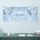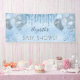 Pour un Baby shower élégant. Un arrière - plan faux métallique bleu clair. Décoré avec des gouttes de parties scintillant imitation, le look goutte à goutte de peinture, la poussière de parties scintillant et les ballons de couleur bleue et argent. Personnalisez et ajoutez un nom. Idéal à la fois comme bannière de bienvenue ou comme décor de fête.