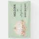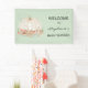 Cette jolie bannière de baby shower d'automne présente un citrouille blanc aquarelle et un feuillage pastel sur un arrière - plan vert tendre. Parfait pour un baby shower sans distinction de genre. Facile à personnaliser. Aquarelle originale © Michele Davies.