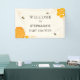Cette bannière d'accueil sur le thème des abeilles présente une ruche d'abeilles aquarelle et des abeilles sur un arrière - plan crème douce. Parfait pour un baby shower de garçon, de fille ou de garçon neutre. Facile à personnaliser. Utilisez l'outil de conception pour modifier la taille, le style ou la couleur du texte. Parce que nous créons notre oeuvre, vous ne trouverez pas cette image exacte d'autres designers. Aquarelle originale © Michele Davies.