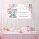 Faites savoir à vos invités qu'ils sont arrivés avec cette adorable bannière de baby shower avec un éléphant de petite fille rose et gris avec des ballons et des confettis. Facilement customisé pour votre événement en cliquant sur personnaliser.
