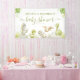 Bannière de la fête du baby shower Dinosaur Sweet Watercolor, les invitant à un voyage dans un paradis d'inspiration préhistorique. Dotées d'un délicieux éventail de couleurs douces, notamment des gris, des verts et des feuillages tropicaux luxuriants, ces bannières apportent une touche de couleur à toute fête.