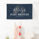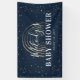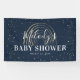 Bannière de Baby shower Little Star Twinkle Twinkle, avec un arrière - plan bleu marine tendance, un arc-en-ciel abstrait faux or, une diffusion d'étoiles dorées et un modèle moderne conçu avec script de calligraphie blanche et texte cursif qui est facile à customiser.