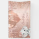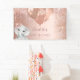Pour un Baby shower élégant. Un arrière - plan rose à l'apparence métallique. Décoré d'or rose, gouttes de parties scintillant rose, look goutte à goutte de peinture, gouttes de parties scintillant, ballons et un bébé éléphant. Personnalisez et ajoutez le nom. Idéal à la fois comme bannière de bienvenue ou comme décor de fête.