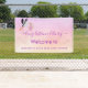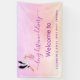 Pour une conduite élégante et girly à travers le baby shower. Un romantique violet, rose et or rose dégradé arrière - plan, lettres violettes. Avec une jolie cigogne volante tenant une petite fille. Personnalisez et ajoutez le nom de la future maman. Avec le texte "Livraison longue distance" et "Bienvenue à". La livraison longue distance est écrite avec un script de style moderne et tendance à la main avec des swashes. Simple, minimaliste et design !