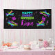 Un motif de bâtons et bracelets épars dans un ensemble de couleurs néons vives ajoute un élément amusant à cette bannière Sweet sixteen. Ajoutez un nom personnalisé à l'aide du modèle fourni. Cherchez ID760 pour voir la coordination des invitations et autres fournitures de partie avec cette conception colorée.