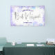 Soyez fiers, réjouissez-vous et mettez en valeur ce jalon de votre Bat Mitzvah préférée ! Accrochez cette bannière personnalisée, moderne et élégante pour ajouter à son jour spécial. Une écriture calligraphique en faux foil argenté scintillant et des points de paillettes se superposent sur un fond aquarelle violet doux. Personnalisez le texte personnalisé avec le nom et la date de votre Bat Mitzvah ou un message personnalisé. Garantit de préserver les souvenirs chéris de son occasion spéciale ! Des invitations, des étiquettes d'adresse, des autocollants, des classeurs de souvenirs et d'autres goodies de Bat Mitzvah assortis et coordonnés sont également disponibles dans cette collection tendance et spéciale.