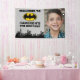 Donnez vie à votre fête avec cette bannière photo d'anniversaire Batman Gotham City personnalisée ! Doté de l'emblématique skyline de Gotham City et de Bat-Signal, ce design audacieux comprend de l'espace pour ajouter le nom et la photo du héros de l'anniversaire, ce qui en fait une décoration unique. Parfait pour préparer le décor d'une fête au thème des super-héros, cette bannière ajoute de l'excitation et une touche personnelle que les clients aimeront.