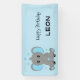 Cette bannière d'anniversaire présente un bébé éléphant dessiné à la main en bleu, numériquement traité. Le petit éléphant est parfait pour la fête d'anniversaire de vos petits garçons ! Texte personnalisé.