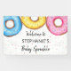 Cette mignonne bannière d'arrosage pour bébés comporte des beignes d'aquarelle rose, bleue et jaune et des confettis saupoudrés. Parfait pour une célébration de bébé sans distinction de genre. Customisez-le avec vos détails. Parce que nous créons notre oeuvre, vous ne trouverez pas cette image exacte d'autres designers. Aquarelle originale © Michele Davies.