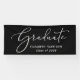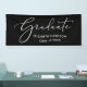 Bannière noire chic pour votre fête de remise de diplôme avec "Diplômé" dans une belle écriture blanche et le nom et l'année de promotion du diplômé en typographie blanche moderne simple.