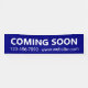 Cette bannière qui va arriver est bleu marine. Le texte est blanc. Bientôt, c'est une grosse police. C'est au-dessus du texte supplémentaire que vous pouvez modifier pour afficher un message personnalisé tel que votre numéro de téléphone et votre site Web.
